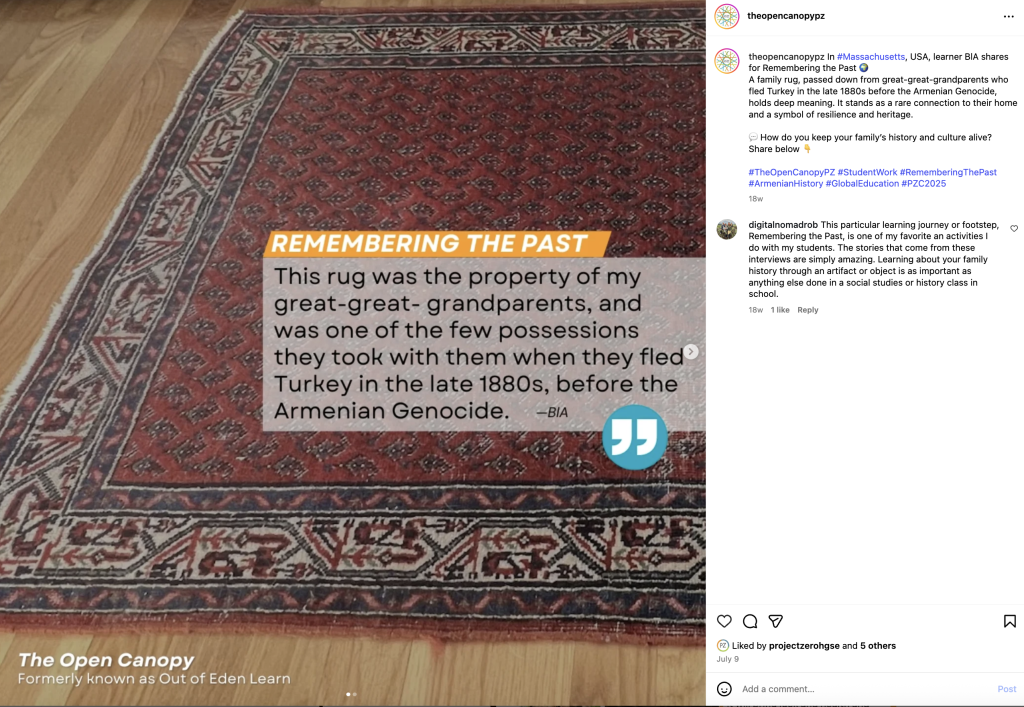 Student work shared by The Open Canopy. Image credit: https://www.instagram.com/p/DL4nS-zz6No/?img_index=1.